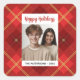 Custom Happy Holidays Fun Plaid Red Green Photo Square Sticker