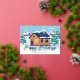 This beautiful custom real estate gold foil holiday card is perfect for a realty company located up north. A beautiful home drawing of a house lined with snow and smoke coming out of the chimney next to green trees. A realtor can keep Happy Holidays in cursive script or customise with their own seasons greetings. Add your personalised message on the back.