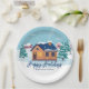 This beautiful custom real estate holiday party plate is perfect for a realty company located up north. A beautiful home drawing of a house lined with snow and smoke coming out of the chimney next to green trees. A realtor can keep Happy Holidays in cursive script or customise with their own seasons greetings for Christmas.