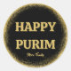 Custom Happy Purim Classic Gold Glitter Round Sticker