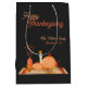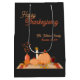 Celebrate the warmth of the season with our Custom Happy Thanksgiving Gift Bag, designed to add a festive and personal touch to your holiday gifting. Featuring a charming autumn illustration of pumpkins, candles, and fall foliage on a sleek black background, this medium-sized gift bag is perfect for presenting thoughtful Thanksgiving treats, party favours, or hostess gifts. Personalise with your family name or a short message to make it extra special. Ideal for adding seasonal flair to your holiday gatherings.
