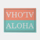 This custom Hawaiian greeting and farewell door mat features a tropical teal color covering one half of the mat, and a tropical coral color covering the other portion. The mat is reversible so you can choose which portion is the bottom and which is the top. "ALOHA" is printed above the image of the gingerbread man with a sample family name printed near the bottom. Aloha means both "hello" and "goodbye" so it's a cute and funny way to say hello and goodbye to your guests as they visit your home.