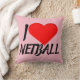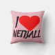 Custom I Love Netball throw pillow cushion with red heart design. Great gift idea for a player or a coach.