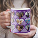 This personalised coffee mug features a beautiful heart pattern design that fits up to 15 of your favourite photos — pets, family, friends, or special memories. Each image is framed in a heart shape for a sweet, custom touch. A perfect gift for Valentine’s Day, anniversaries, birthdays, or just because. You can add the names of who this mug is to and from, or you can delete the text boxes.