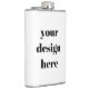 The flask itself is fine. It’s a cheap flask, obviously bought in bulk, however am prepared to overlook that. Given that it is a personalized item, I would have liked to have seen gift boxing instead of the generic packaging. Terrible printing, and/or quality. It’s a cheap, tacky vinyl. It is not cut straight and is also applied in a way that it is overhanging the bottom, causing the glue to catch on items and it will eventually roll and tear, damaging the wrap.