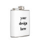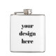 The flask itself is fine. It’s a cheap flask, obviously bought in bulk, however am prepared to overlook that. Given that it is a personalized item, I would have liked to have seen gift boxing instead of the generic packaging. Terrible printing, and/or quality. It’s a cheap, tacky vinyl. It is not cut straight and is also applied in a way that it is overhanging the bottom, causing the glue to catch on items and it will eventually roll and tear, damaging the wrap.