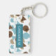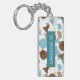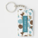 Durable rectangular key chain with classy, fun and contemporary pastel grey turquoise teal blue, beige, taupe and brown coloured abstract geometric triangles, polka dots and half circles mosaic pattern design on a white background. With room to customise or personalise with name of your choice. Stylish, modern and cool customisable style for the fashionable woman. To attach to your purse or backpack zipper, to hold loyalty rewards or membership cards, or of course... to hold keys! What ever keys you want to stay in place and hold together, a unique personalised key ring will make it look nicer and also easier to recognise as your own set. Click on our store name to check out more unique key holders with other custom designs.