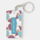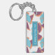 Durable rectangular key chain with classy, fun and contemporary pastel coral orange, violet purple, teal turquoise, light medium and dark blue coloured abstract geometric triangles, polka dots and half circles mosaic pattern design on a white background. With room to customise or personalise with name of your choice. Stylish, modern and cool customisable style for the fashionable woman. To attach to your purse or backpack zipper, to hold loyalty rewards or membership cards, or of course... to hold keys! What ever keys you want to stay in place and hold together, a unique personalised key ring will make it look nicer and also easier to recognise as your own set. Click on our store name to check out more unique key holders with other custom designs.