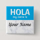 Custom Hola Hello my name is pin button. This nametag has a bright blue background with a modern white marble pattern for your personalised name. You can change the blue background colour for your own style. Use this easy template to customise the text and name. Great for reunions, business meetings, church groups, study groups, training classes, gatherings, parties, employees, etc...