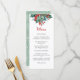 This custom holiday menu is a perfect choice for bridal showers, luncheons, wedding receptions and other events during the holiday season. It features sprigs of watercolor holly and berries in red, green and blue-green. Edit the sample text with your menu specifics.