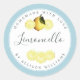 Elegant and modern limoncello sticker label with the text limoncello, homemade with love and your name in chic script calligraphy and modern typography on a pastel blue glow background with a stylish touch of pretty watercolor lemon and lemon slices. Simply add your name or business. Exclusively designed for you by Happy Dolphin Studio. If you need any help or matching products please contact us at happydolphinstudio@outlook.com.