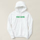 You can change the emblem and text to whatever you like on this very comfy hooded sweatshirt.