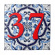 Custom House Number Blue Ornate Floral Sicilian Ceramic Tile