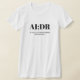 Sarcastic anti AI T-shirt with customisable text and bold caps font. This is a great way to show your disdain for AI-generated writing. AI;DR stands for AI (written); Didn't Read (a 'sister' version of TL;DR). Customisable text reads: IF YOU CAN'T BE BOTHERED NEITHER CAN I. Ideal gift for your favourite (human) author. Also in black.