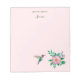 Pretty custom notepad featuring an Anna's hummingbird and a wild rose bouquet on a light pink background.