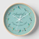Perfect custom gift for bakers and hummingbird lovers! This pretty wall clock is featuring a watercolor wreath of hummingbirds and botanical branches on a blue background and the sentiment on the clock face that reads "happiness is home-baked". The text can be changed, the font style, font colour and font style can also be changed by clicking on "Edit using design tool". All hummingbird images are taken from original watercolors by C. Dobbins.