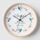 This pretty customisable wall clock is featuring a watercolor wreath of hummingbirds and botanical branches on a white background. The font size and font style can be changed by clicking on "Edit using design tool". All hummingbird images are taken from original watercolors by C. Dobbins.