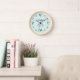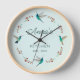 This pretty customisable wall clock is featuring a watercolor wreath of hummingbirds and botanical branches on a light blue background. The font size and font style can be changed by clicking on "Edit design". All hummingbird images are taken from original watercolors by C. Dobbins.