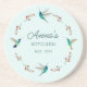 This pretty customisable coaster is featuring a watercolor wreath of hummingbirds and botanical branches on a light blue background. The font size and font style can be changed by clicking on "Edit using design tool". All hummingbird images are taken from original watercolors by C. Dobbins.