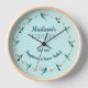 Perfect custom gift for bakers and hummingbird lovers! This pretty wall clock is featuring a watercolor wreath of hummingbirds and botanical branches on a light blue background and the sentiment on the clock face that reads "happiness is home-baked". The text can be changed, the font style, font colour and font style can also be changed by clicking on "Edit using design tool". All hummingbird images are taken from original watercolors by C. Dobbins.
