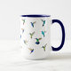 Unique custom mug for hummingbird lovers featuring several species of hummingbirds, such as a Broad-billed Hummingbird, a Fiery-throated Hummingbird, Golden-tailed Sapphire and Sapphire-bellied Hummingbirds, Mexican Violetear Hummingbirds, Coronet and Glittering Starfrontlet Hummingbirds. Images taken from original watercolor paintings by Christiane Dobbins.