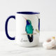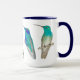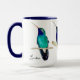 Custom mug for hummingbird lovers featuring a hand-painted Broad-billed Hummingbird, a Coronet Hummingbird, a Mexican Violetear and a White-chested Emerald Hummingbird. Personalize with your name. The font style and font size can be changed by clicking on "Edit design."