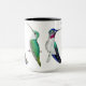Custom mug for hummingbird lovers featuring a Mexican Violetear Hummingbird, a female Ruby-throated, a Long-billed Starthroat and a Broad-billed Hummingbird. Personalise with your name. The font style and font size can be changed by clicking on "Edit using design tool."