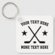 Custom ice hockey keychain for player and teams. Personalised square metal key chains with crossed hockey sticks, stars and puck logo. Double sided print. Cool Birthday or Christmas gift for kids and adults. Add your own colour.