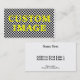 A custom image of your choice appears on the front. On the back appears full name text, address text, and phone or social media networking text.