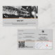 The Modern Custom Image New Customer Advocate Reward Referral Card template in landscape format is part of the Grey Business Card Designs & Marketing Items Collection. The Advocate Referral Card has placeholders on the front for one custom image in black and white, the discount and terms and conditions. The referral card has a standard business card size. On the back is space for the new customer's name, the referring advocate, as well as a tracking ID. Both can be printed or handwritten. Along the bottom border to the left is a QR code with the CTA (call-to-action) to scan and find out more details about the program. Meanwhile to the right is a map extract to give a visual for the location. Above is the company logo, contact and address details.