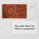 Here's your customisable business card. It features an actual image of hand tooled leather by leather artist Casey Jordan. One side is blank for you to customise as you wish.