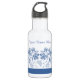 Custom Indigo Blue Floral Border Water Bottle