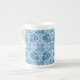 Custom Indigo Blue Floral Faux Lace Pattern Bone China Mug