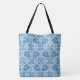 Custom Indigo Blue Floral Faux Lace Pattern Tote Bag
