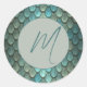 Custom initial blue scales textured classic round sticker