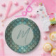 Custom initial blue scales textured paper plate