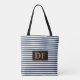 Custom Initial Blue/White Stripes Tote Bag