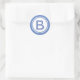 This monogrammed sticker can be used for an envelope seal, a custom gift label, or for other occasions. This personalised sticker has a blue initial on a background of white with a circle border. The initial in the middle can be easily customised to a letter of your choice.