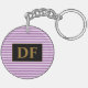 Custom Initial Purple Stripes Key Ring