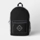 Custom Initials Elegant Manly Black Chic Art Deco Printed Backpack