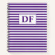 This notebook features purple and white stripes and can be personalised with your initials. Whether you're using it for work, school, or personal journalling, this notebook is for you, order today!