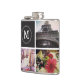 Custom flask with room for 7 square shaped photos and a monogram.