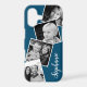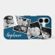 Custom Instagram Photo Collage Navy Blue Personalized iPhone 17 Case. This trendy modern design features a place for 4 square instagram style photos. Add your name or text to further personalize this custom DIY design and choose your own background color.