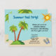 Cute summer pool party or beach party invitation great gor a kids birthday party or beach festivities. Green palm trees, blue flip flops, sunshine, sand and blue sky. Super cute b-day party invite.