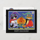 Here they come and there could be trouble! Two little cats dressed as witches, parading their expertly carved pumpkin on a starry night. Say "Happy Halloween" with this fun holiday postcard. All the text can be customised or deleted so you can personalise it with your own words and make it truly unique. Cards are available printed with either a semi-gloss or matte finish.
