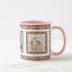 Custom Jolly Autumn Fall Winter Christmas Pattern Photo Picture Tea Coffee Mug. In traditional autumnal colors of bright pink red, green, and purple; in a merry multicolour, maximalist, modern geometric pattern. For winter warmer drinks and cheerful hot chocolate on cozy winter nights in. Change the three photos to your own pictures to celebrate joyful family memories. Buy as a budget friendly festive keepsake tableware gift for her or grandparents.
