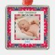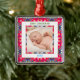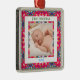Custom Jolly and Festive Christmas Photo Picture Frame Square Tree Ornament. A colourful and bright decoration. Replace the photo and text with your own to celebrate your Yuletide memories. Give as a stocking filler keepsake gift to family and loved ones. In warm winter colours of red, green and orange and purple. With hints of icy blue. A budget friendly present for grandparents, parents, couples, siblings and best friends. A merry and bright colour block pattern frame borders the picture. Based on colourful, traditional designs. Use as a personalised way of decorating the Christmas tree. Have a maximalist Christmas!
