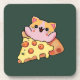 Custom Kawaii Cat Hugging Pepperoni Pizza Cartoon Coaster