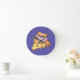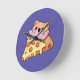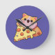 Custom Kawaii Cat Hugging Pepperoni Pizza Cartoon Round Clock