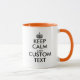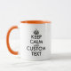 Custom Keep calm and carry on combo colour coffee Mug. Create your own funny Keep Calm and Carry On parody. Modern typography template with crown. All customisable colours. Fun cups for home or office. Add your own text. Cool Birthday or Christmas gift idea for friends, family, coworker, colleague, teacher, boss, boyfriend, girlfriend etc. Orange coloured handle and inside. Double side print.